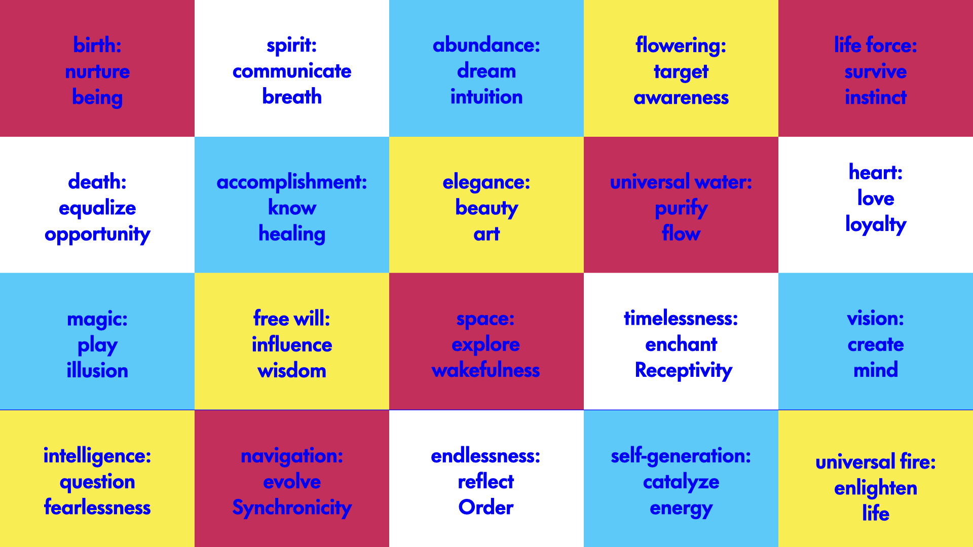 Together, the 20 solar seals are also called the Rainbow Nation, all with an equally important role in the balance of the Universe in our archetypical journey: